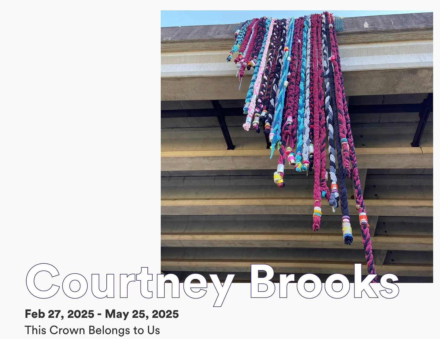 This fiber art installation by Courtney Brooks was originally displayed on Art Atlanta BeltLine’s Southside Trail in 2020, highlighting the creativity, sisterhood, and significance of Black hair practices. This community hair braiding project invited Black women and girls to participate in crafting the fifteen foot long braids, and brings awareness to the CROWN Act which protects girls and women from being denied employment and educational opportunities because of their natural hair.