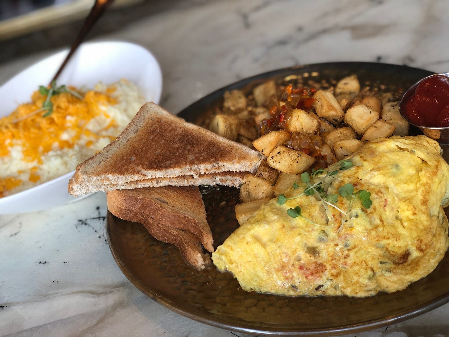 I grab a Lyft to Amina, a black-owned restaurant in the Old City section of Philly. I originally wanted the Cheesesteak Beignets, but saved that for next time and went with a Lobster Omelet - butter poached lobster, pimento cheese, sweet peppers, and red onions served with home style hash browns and a side of cheese grits. I sat at the bar with a book, but no need for it as the staff and owner chatted me up as if they knew me in another life, giving me recommendations and well wishes on my day trip. This is something I don’t often feel in my home city of Atlanta, but almost every time I visit another historically black city (like New Orleans). Though I frequent lots of hospitable gems at home, I feel part of my city has loosened its character and gave way to caricature. I finished off my breakfast with warm apple pie and ice cream.