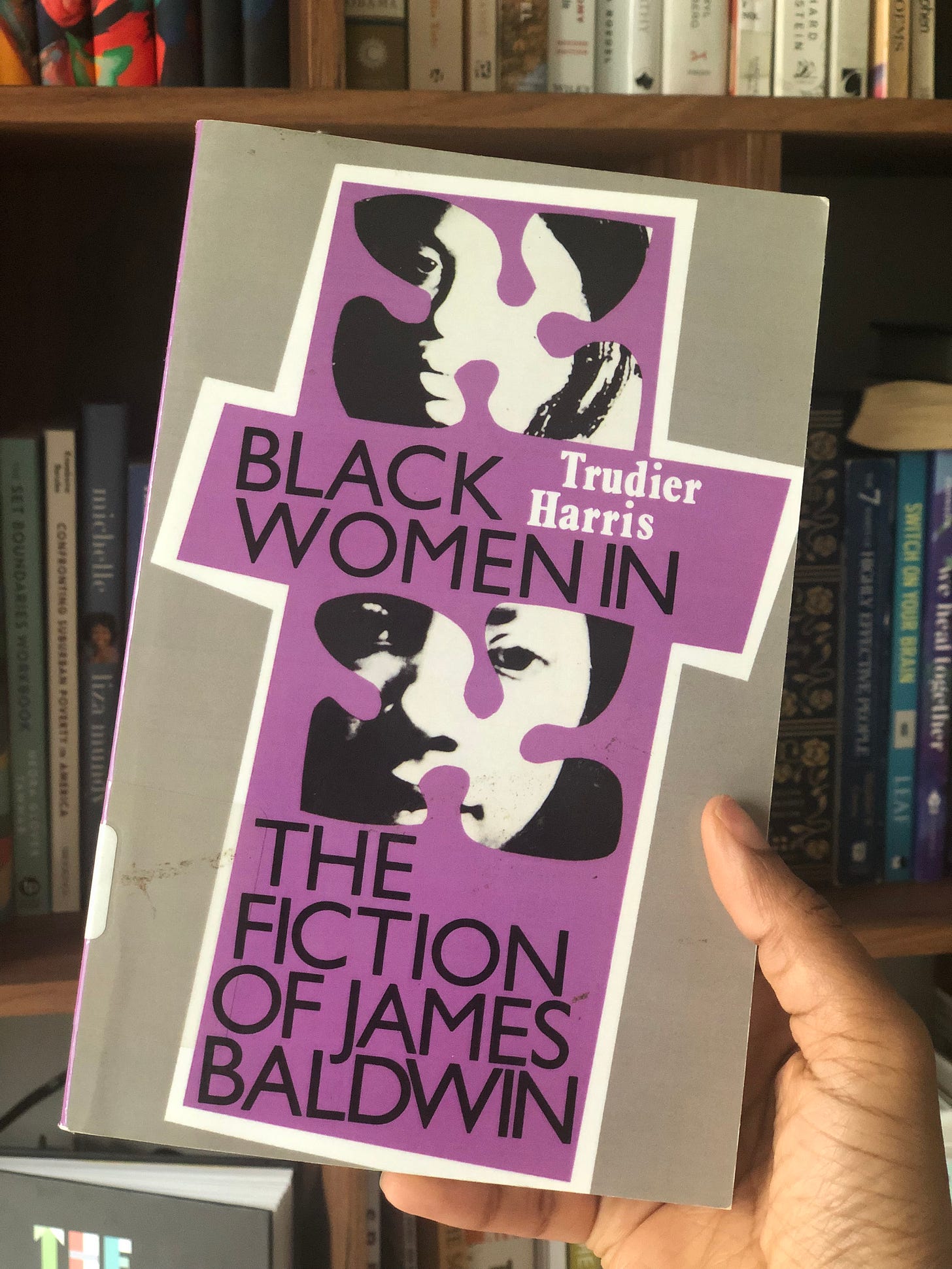 Among the rows of old books I find Black Women in the Fiction of James Baldwin by Trudier Harris, published in 1985. A former library book from Westside High School. Its description reads: